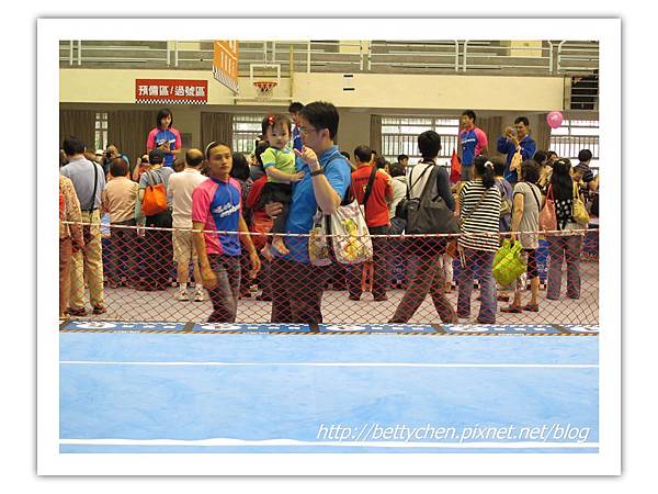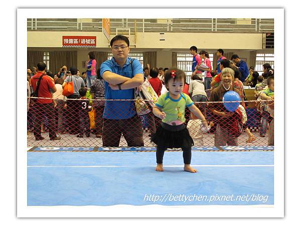 運動衣是一件短袖包屁衣,比賽會場有冷氣還是讓小錢包公主穿著褲子!!!
