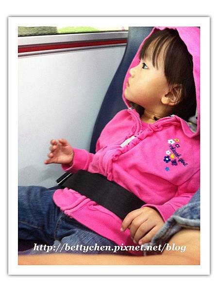 哈 扣好安全帶,乖乖坐著 (其實她有點想睡了)
