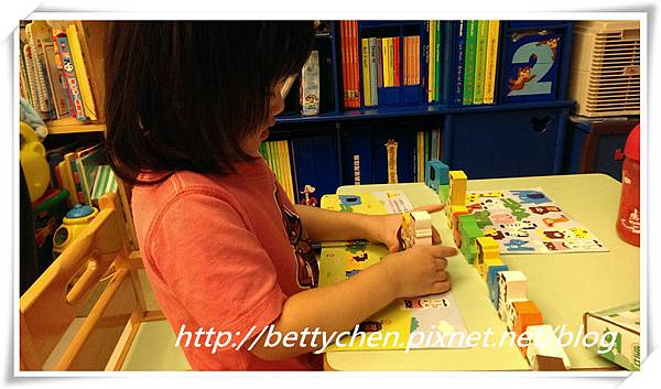 終於她在玩巧虎玩具積木時,開始屬起了1到10唷!!!!