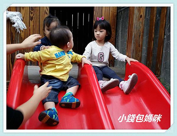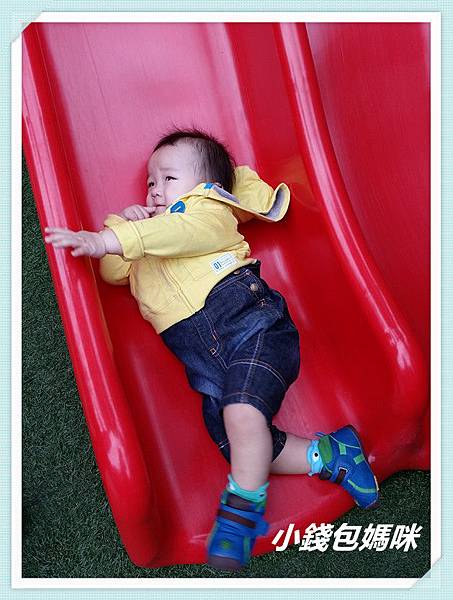 不要小看這小子,自從上次去台中住aka john後,他愛上玩溜滑梯了