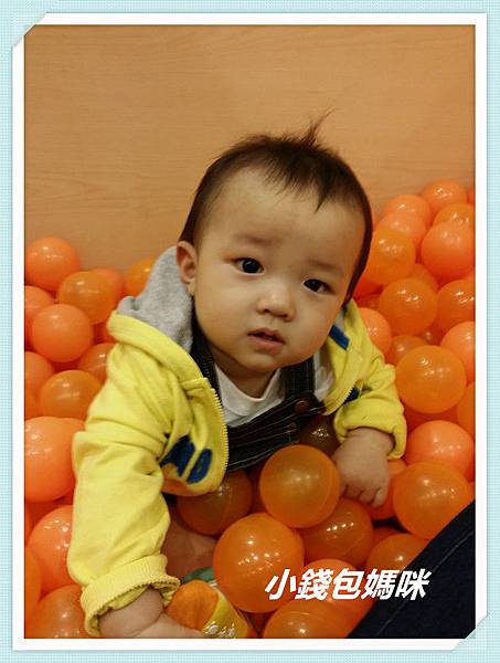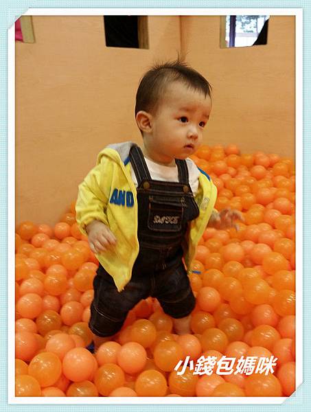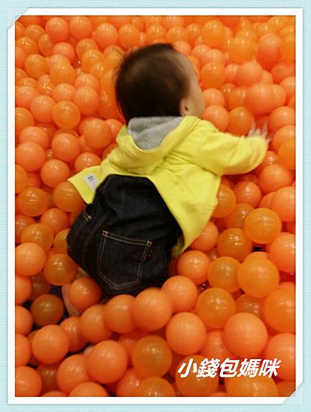 小元寶在球池裡,一整個爬不起來,球真的很多