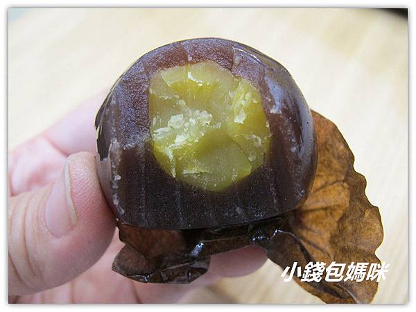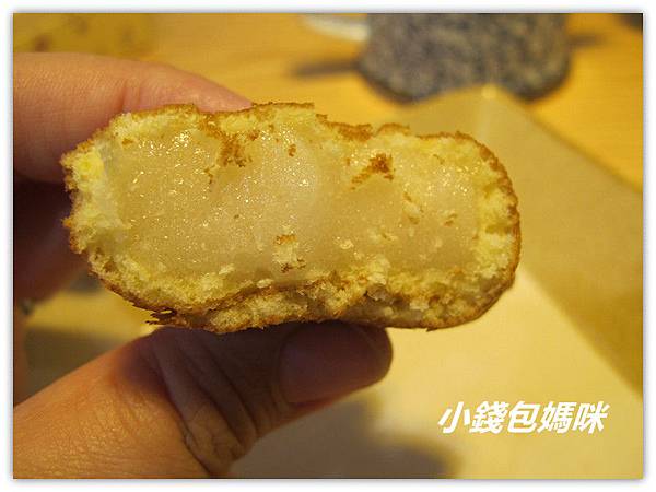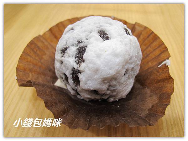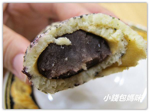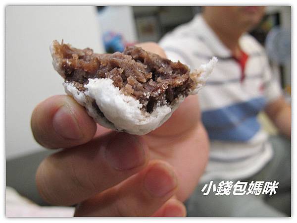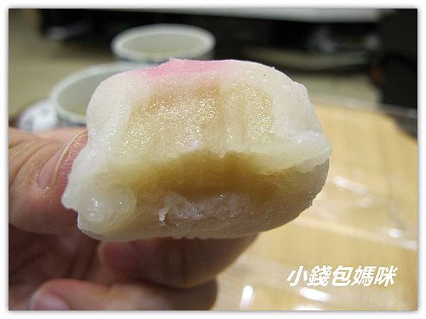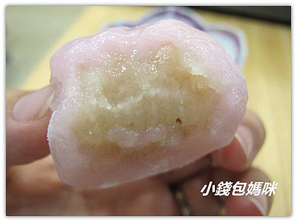 裡頭包的是白豆沙餡料,外皮麻糬是不黏牙的Q彈感