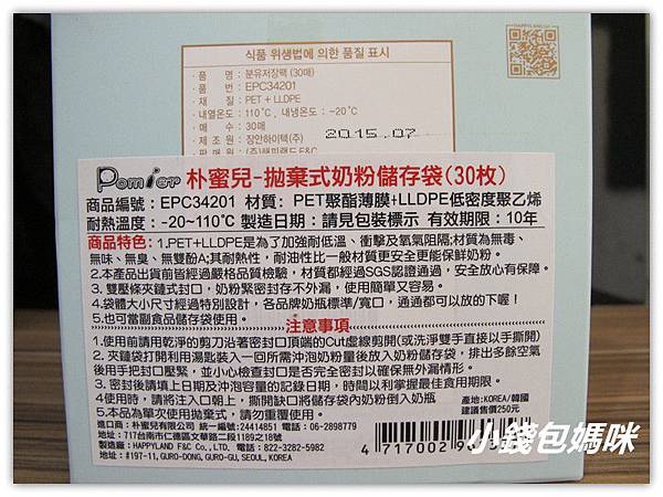 我有次裝好後,洗個手要拿朴蜜兒拋棄式奶粉儲存袋