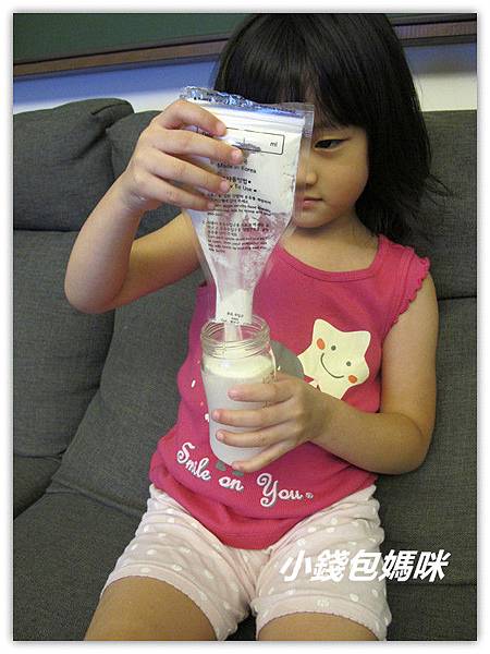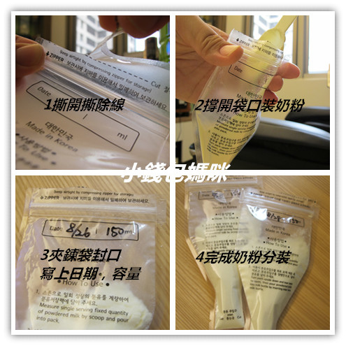 趕緊將朴蜜兒拋棄式奶粉儲存袋,撕開注入口