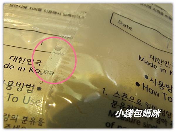 之前有用過他牌,材質是類似藥粉袋,結果我手溼一摸,袋子溼進去,奶粉結塊XD