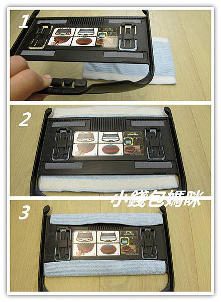 將抹布板卡在LG雙眼小精靈清潔機器人的後方底板