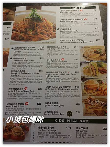 有前菜、沙拉、湯品、主餐、兒童餐、甜點、下午茶和飲品