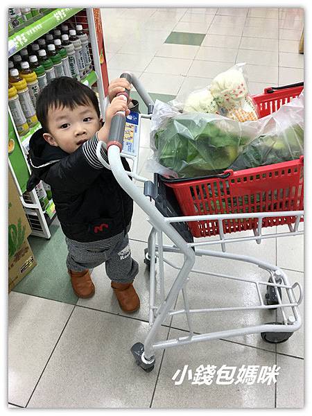 看上面這張照片就知道,愷醬已經可以推大人的購物推車了