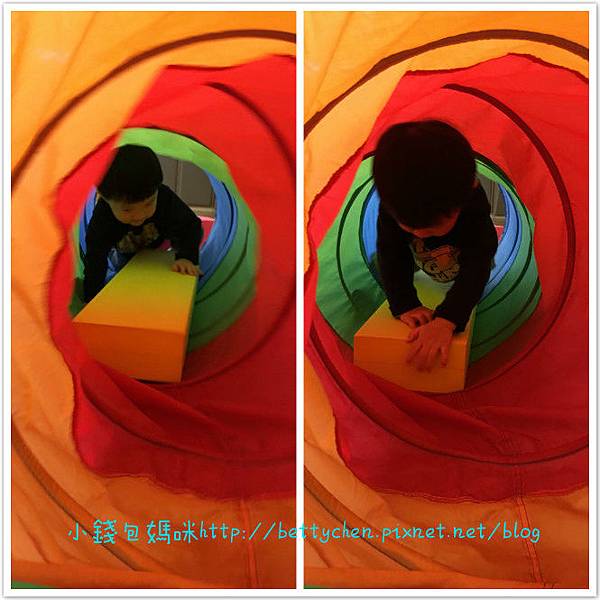 就是要手腳並用爬過二個坡,小朋友的高度不夠,到第二個爬坡,真的要手抓緊,腳用力往往上蹬踩三四步爬上去再翻下樓梯