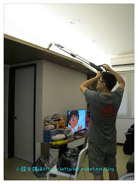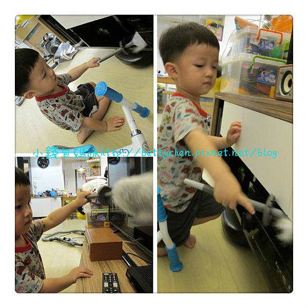 想幫忙的愷醬,就請他把電視櫃上的電器撢一撢囉