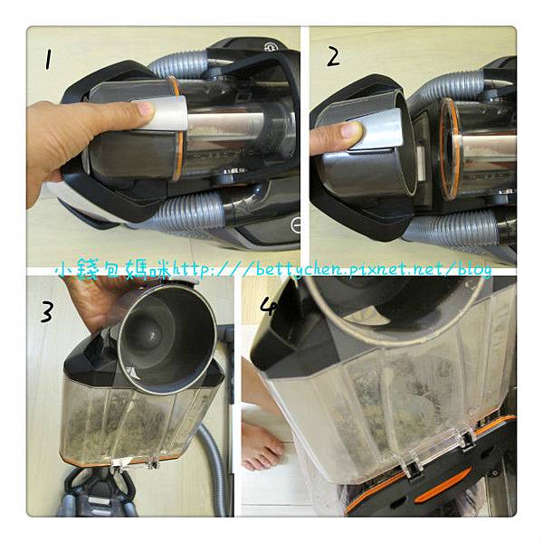 吸完後,要拿集塵盒去倒,看到集塵盒上有一堆成團的、細粉狀的,好噁心呀