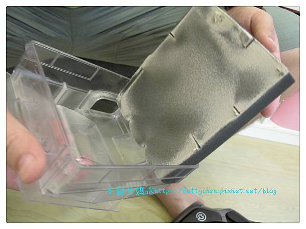 正在運轉時,就可以清楚看到集塵盒裡有一堆粉塵在飛舞呀