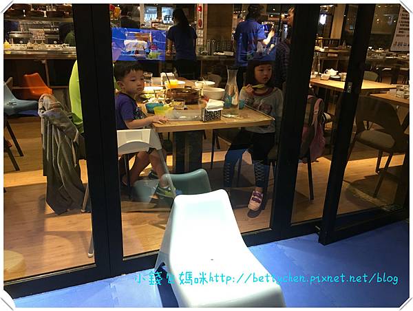 我和老公就在外面悠閒地喝咖啡,還可以看得到小孩,真的很方便啊