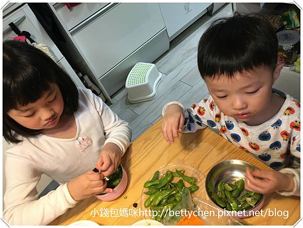 我得一直幫小錢包和愷醬剝毛豆,二個會一直吵著我要吃豆豆吃豆豆