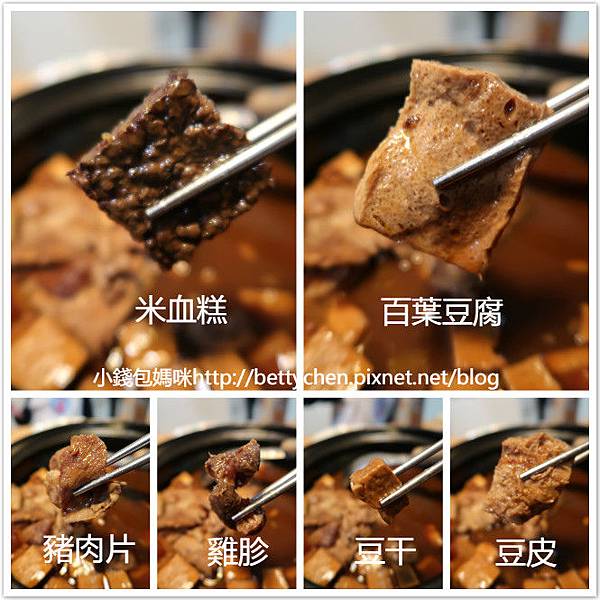 內含豬肉片,雞胗,百頁豆腐,豆干,豆包,米血糕
